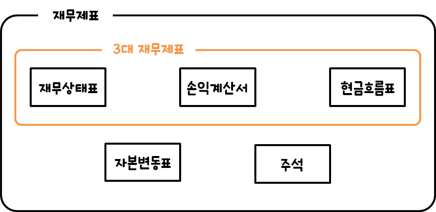 이 중 아래 세가지(3대 재무제표)를 가장 많이 이용한다. 이 세가지 재무제표를 파악할 수 있으면 그 회사의 재무를 머릿속에 그려볼 수 있을 것이다.