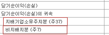 ※ 참고사항 : 실제 연결 재무제표에는 아래와 같이 표시된다.